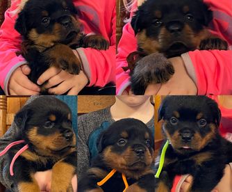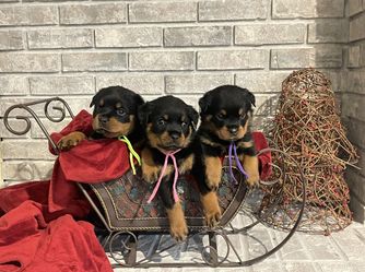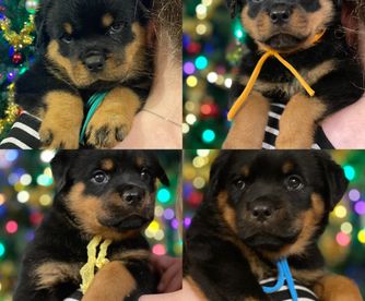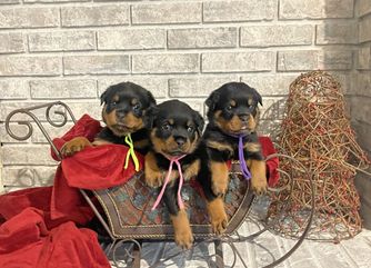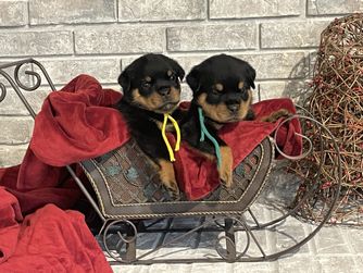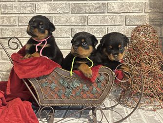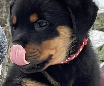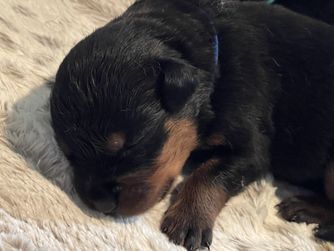 I'm Christina M., the breeder behind vom Blaurasen Rottweilers located in Burlington, KY. My goal is to produce dogs with big beautiful heads, correct structure, sound minds, and breed type. Parents are health tested for Hips, elbows, heart, eyes and JLPP. Puppies are wormed, vaccinated and vet checked prior to going home at 8 wks of age.