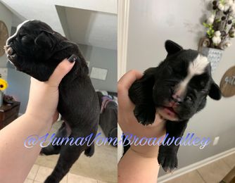 Our puppies include fawn and brindle. Colors will vary depending on the parent dogs.