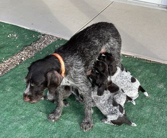 I'm Karen M., the breeder behind vom Cherry Creek Kennel located in Sterling, CO. Our puppies have the temperament to be amazing family members and the drive and trainability to do the job they were bred to do. Our goal is to preserve the natural hunting ability and temperament of Deutsch-Drahthaars by producing versatile hunting dogs that can double as outdoor companions for active families!