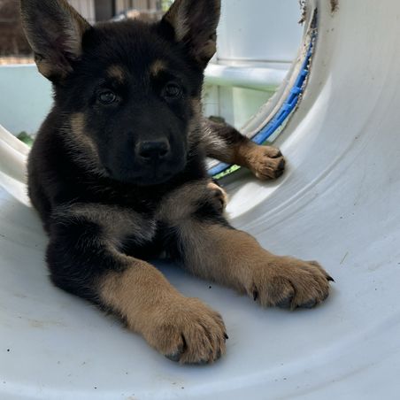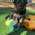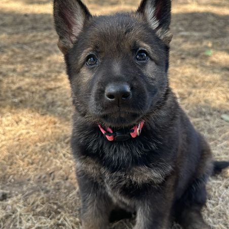Creed x Rayge black daughter is still looking for a home. 5 weeks old now. Ready to go home June 14th. This sweet, beautiful girl is confident, very sweet, and shows nice balanced drives that will lend her to being either an active family pet or a working K9.