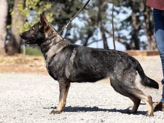 Brando is a tall, thick bodied, blocky headed dog with a beautiful black sable color with excellent conformation and big bone. He has earned his AD, BH, SCHH 1, SCHH 2 and SCHH 3 title In Germany and also a V rating. His scores were very high in all 3 phases of the title. When he came to the USA he went through a police dog certification and was certified as a PD dog.