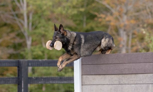 Varus is a once in a lifetime dog. He has amazing drive and power in the work. He is extremely biddable and loves to please me. He has an amazing off switch and settles beautifully in the house. Very correct structure earning himself a V (excellent) in the show ring.
