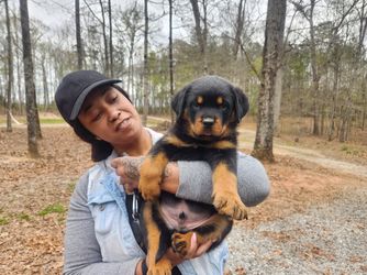 I'm Uriyah & Eliana T., the breeder behind Vom Haus Curbeam Rottweiler Kennel, LLC located in Jackson, GA. We chose to remain a small kennel to ensure we are giving each dog, puppy, and breeding the proper attention and care it deserves. Our goal is to provide our customers with a purebred pedigree Rottie that is ideal for any family, while also having the conformation to compete and work. We take pride in our dogs.