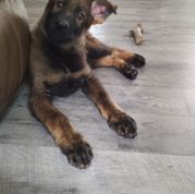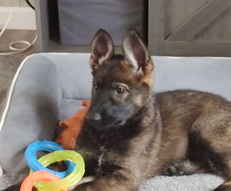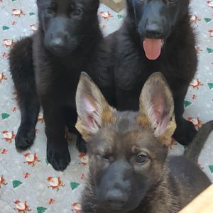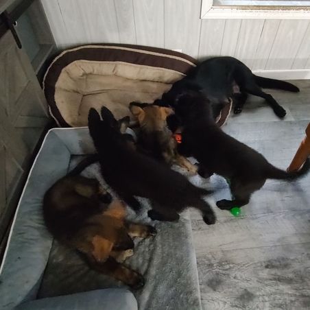 Yva is a striking working line German Shepherd with a sleek, jet-black short coat that mirrors her athleticism and intensity. Driven by a strong desire to work, she excels in every task set before her—whether it's tracking, obedience, or protection. Her high drives are matched by her unwavering willingness to please, making her both a formidable sport dog and a reliable partner. Despite her power and precision in the field, Yva is incredibly affectionate and social with family, friends, and children, blending seamlessly into home life as a loving companion. She possesses a natural sense of protection without being overbearing, and her instincts shine brightest in her role as a devoted and attentive mother, nurturing her puppies with gentle care and unwavering vigilance. Yva embodies the perfect balance of working excellence and family devotion