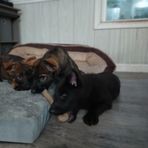We're 9 weeks old today!!! And we have Mom about ready to jump out the window! Atlas (right hand black puppy with tongue) will be going to his new home next week!