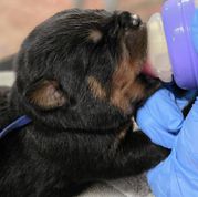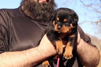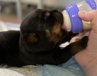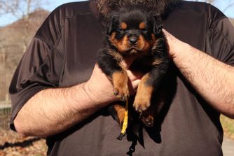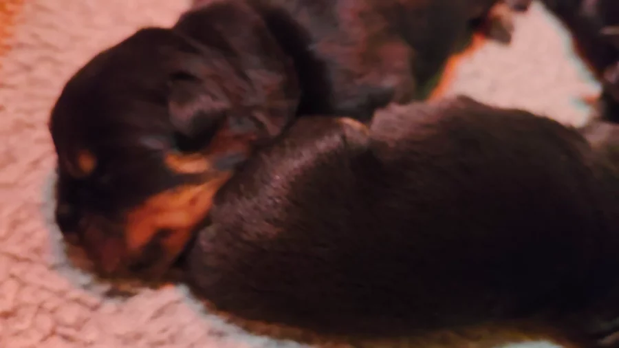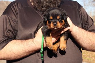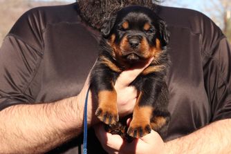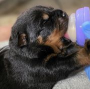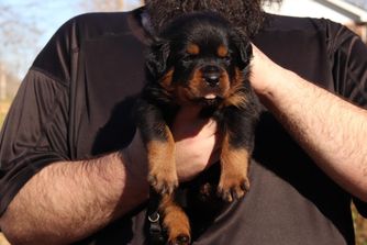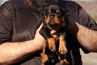 Rottweiler puppies are black and tan. Colors will vary depending on the parent dogs.