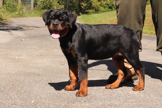I have been raised on a farm my entire childhood. Raising animals has just been a normal part of my life for as long as I can remember. When my husband and I had our girls we decided we wanted a dog that would be loyal to our family, eager to please, happy to see visitors, but smart enough to know when to alert us if in danger. A Rottie is just that - they really are the total package. After that, we decided we wanted to raise them.