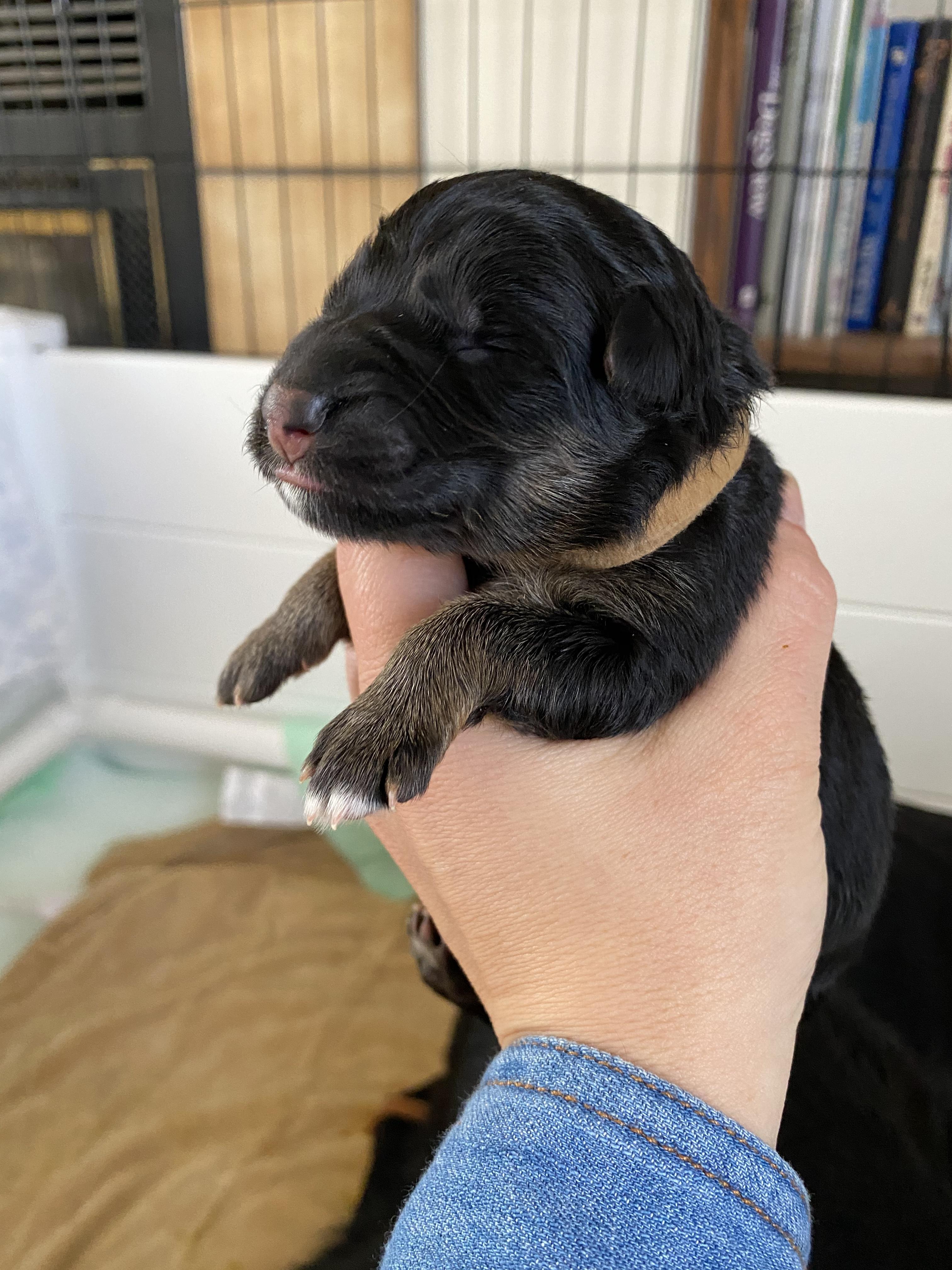 Our puppies include black, black and tan, and black and red. Colors will vary depending on the parent dogs.