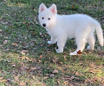 Our German Shepherd puppies are black and red. Berger Blanc Suisse puppies are white. Colors will vary depending on the parent dogs.