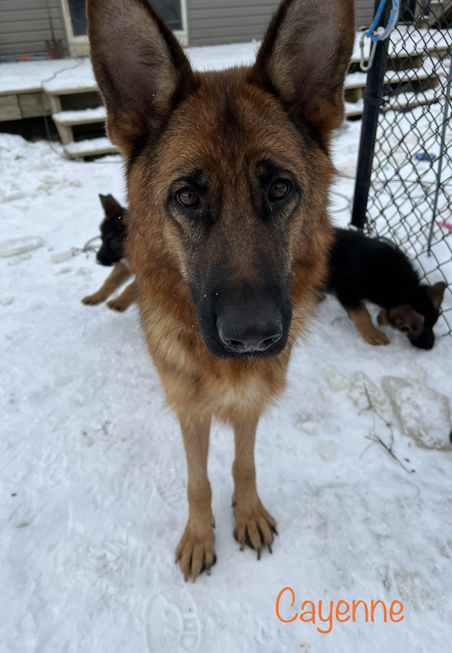 Cayenne is a female German Shepherd. Carefully selected as a great representative of her breed, Nicholas decided to make her part of their program. Nicholas has passed Good Dog’s screening process, which involved a review of their breeding practices, environment, and the mental and physical health of their dogs.