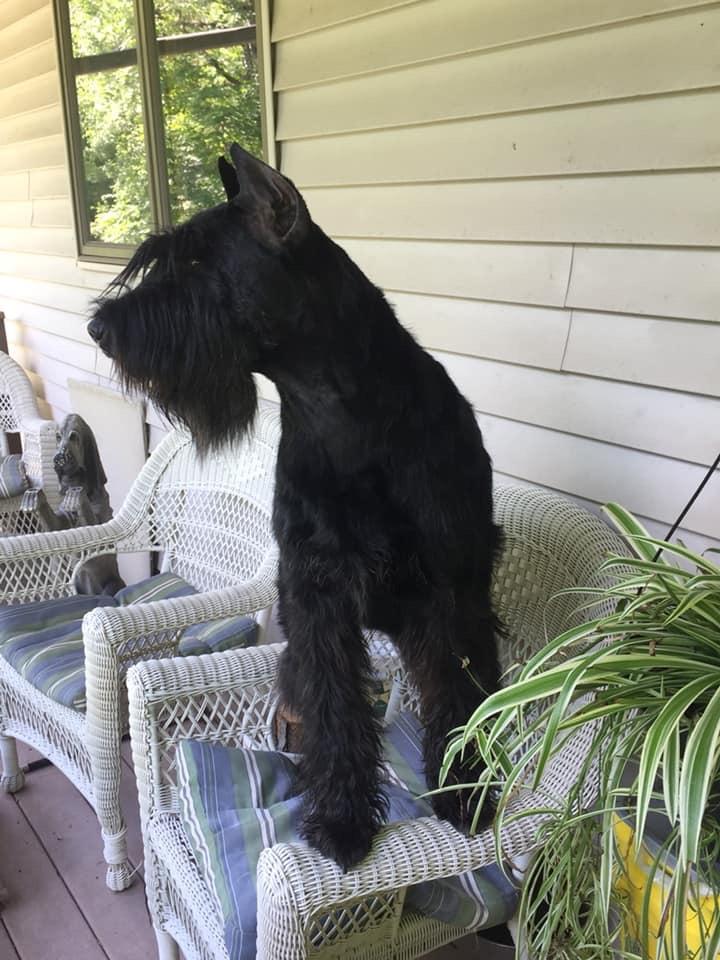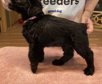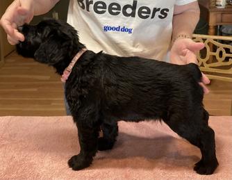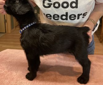 Kiwi is a female Giant Schnauzer. Carefully selected as a great representative of her breed, Renee decided to make her part of their program. Renee has passed Good Dog’s screening process, which involved a review of their breeding practices, environment, and the mental and physical health of their dogs.