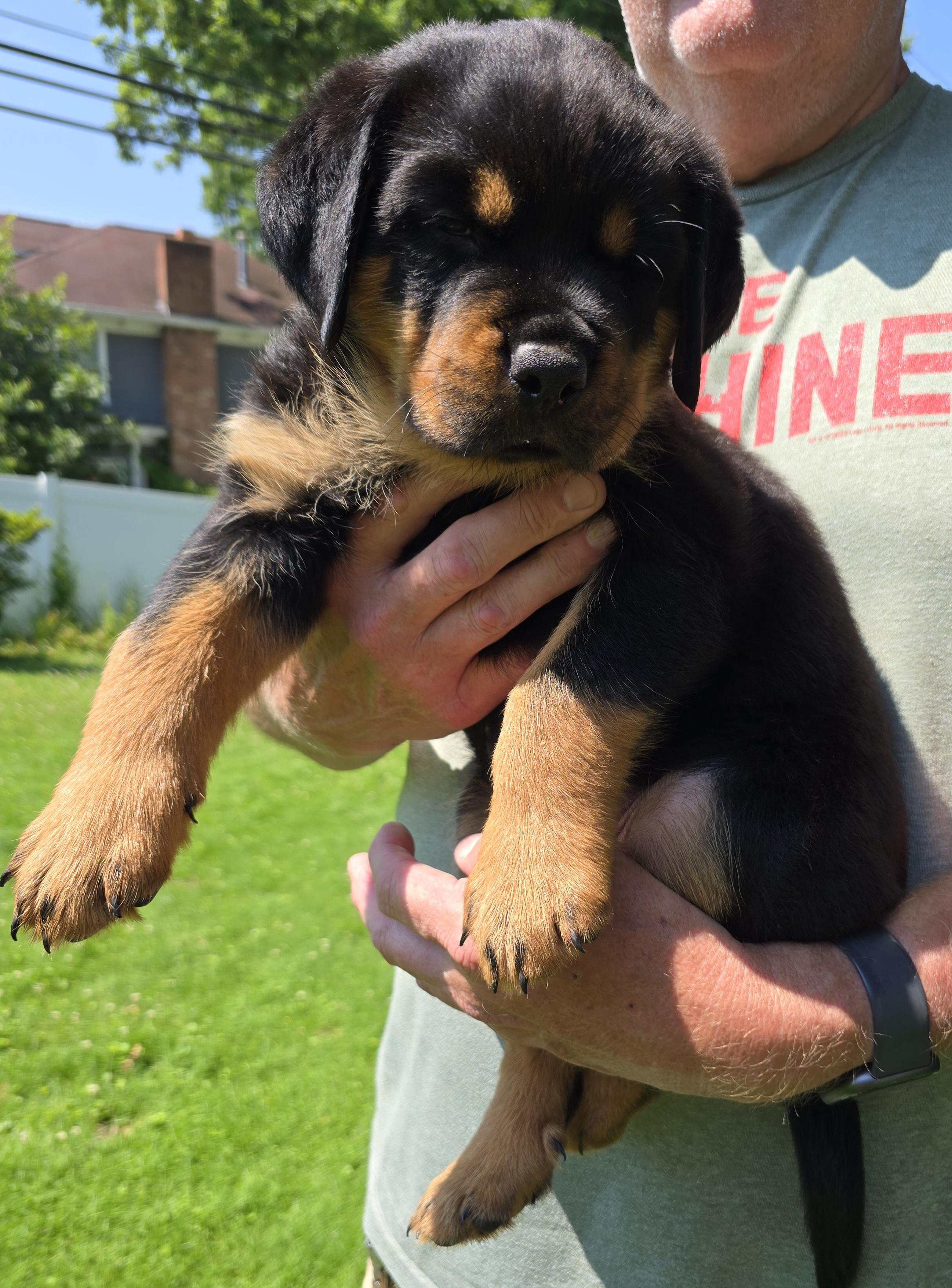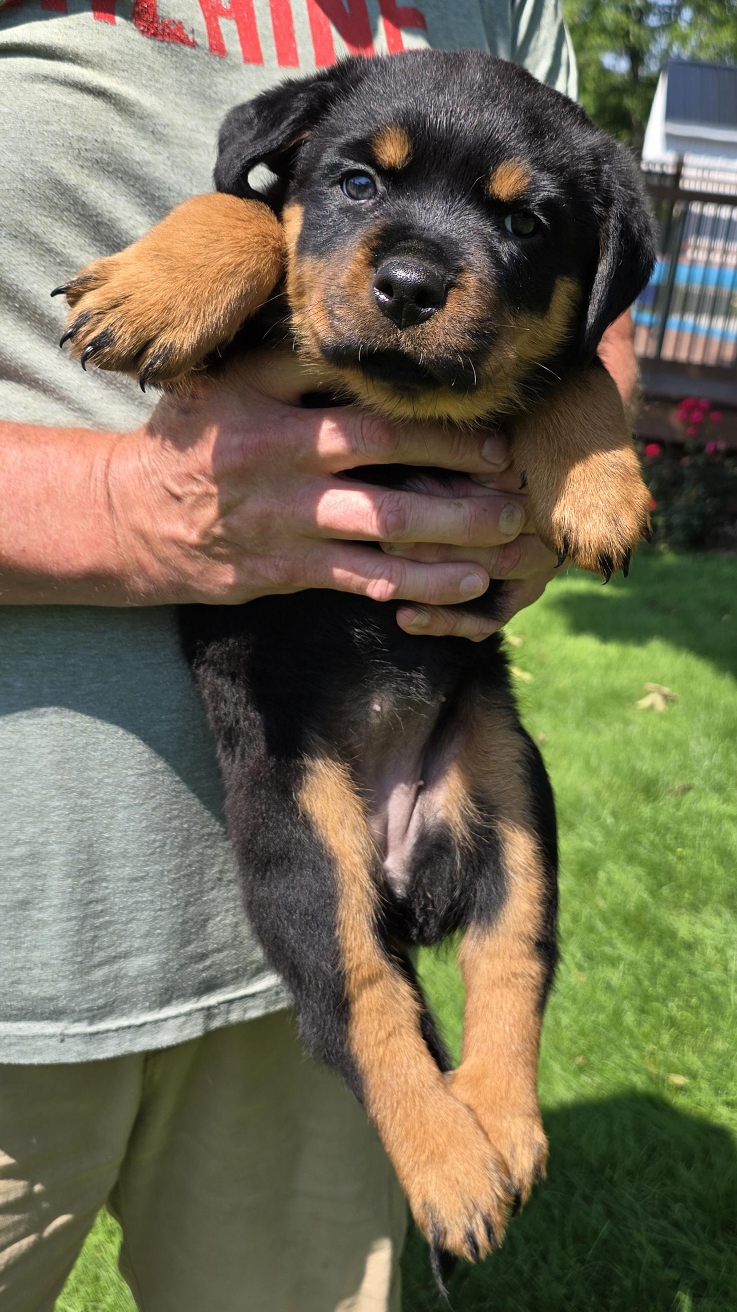 We couldn’t be happier to have found Becky! She loves this breed with her whole heart and was so thoughtful and informative in our conversations to make sure our puppy would be going to a loving home with all the support she would need. When we arrived at her house she gave me and my kids a big hug and welcomed us in to meet the puppies and their parents before talking through all the paperwork with us. She’s checked in to make sure our Lucy is doing well- and she is! We adore our sweet and lovable puppy and it’s all a reflection of Becky’s care in those first six weeks. Couldn’t recommend her enough if you’re thinking about bringing a rottie into your home!