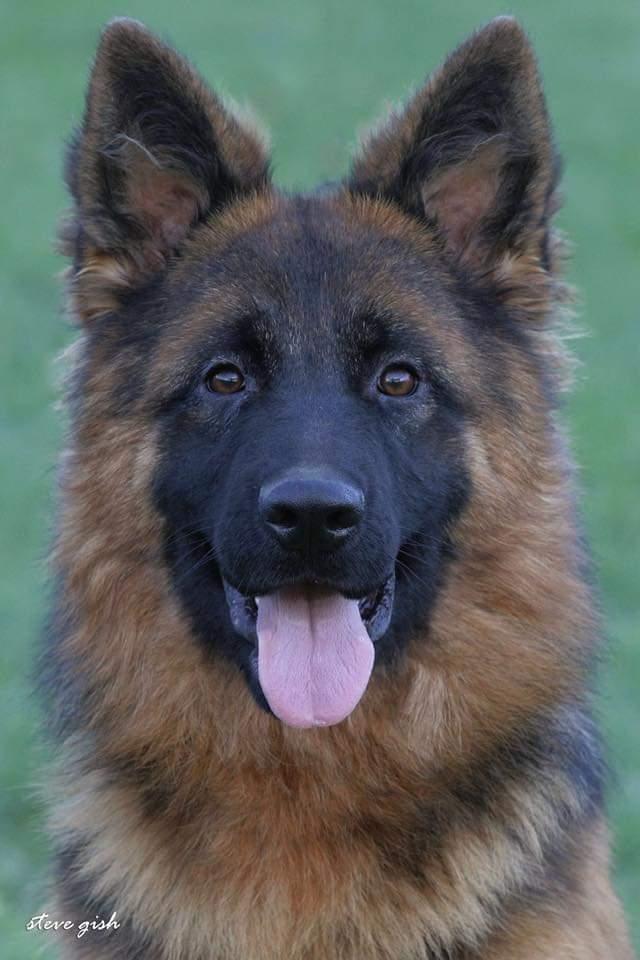 Our breeding program started with Steve. Steve is a handsome long coat male with a fabulous temperament. He loves working, training, really doing anything yet also is content to lay at my feet or on my bed in the house. My love for Steve and the German Shepherd breed ignited a passion for breeding.
