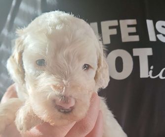 Zara is a female Poodle. Carefully selected as a great representative of her breed, Lacey decided to make her part of their program. Lacey has passed Good Dog’s screening process, which involved a review of their breeding practices, environment, and the mental and physical health of their dogs.