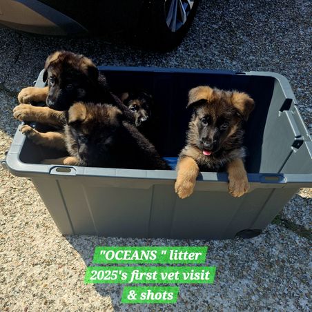 “Price includes all deworming,2 vet visits, 2 Vaccs, AKC paperwrk,Mchip. Puppy pack to take home. Our sires and dams are either titled champions or sired by champions. Crate&Potty training started. Our deposits are non refundable but can be transferred to the next litter. We do refund if we are unable to provide you with a puppy due to lack of puppies.”