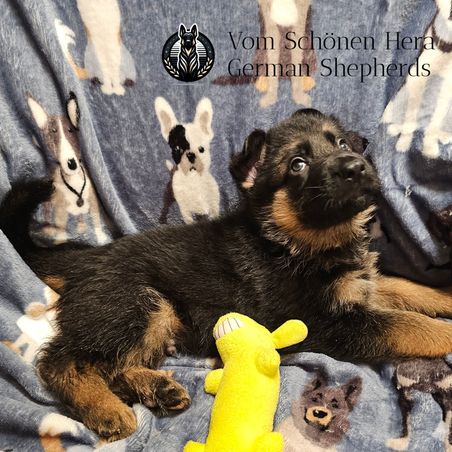 I'm Deborah B., the breeder behind Vom Schönen Hera German Shepherds located in Cloverdale, AL. We focus on improving the breed. We breed for exceptional temperament and health. It is an absolute joy to see these babies thrive and become well adjusted happy doggos.