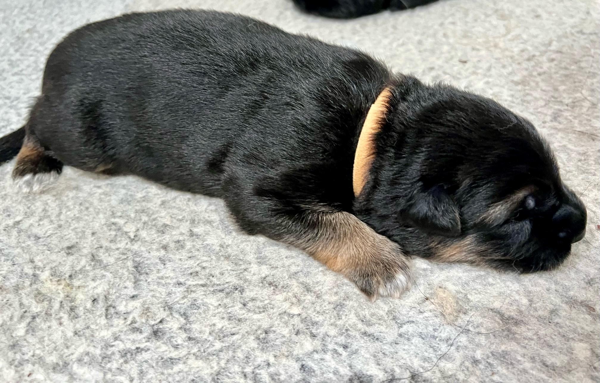 Our puppies are black and red. Colors will vary depending on the parent dogs.