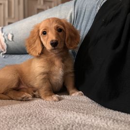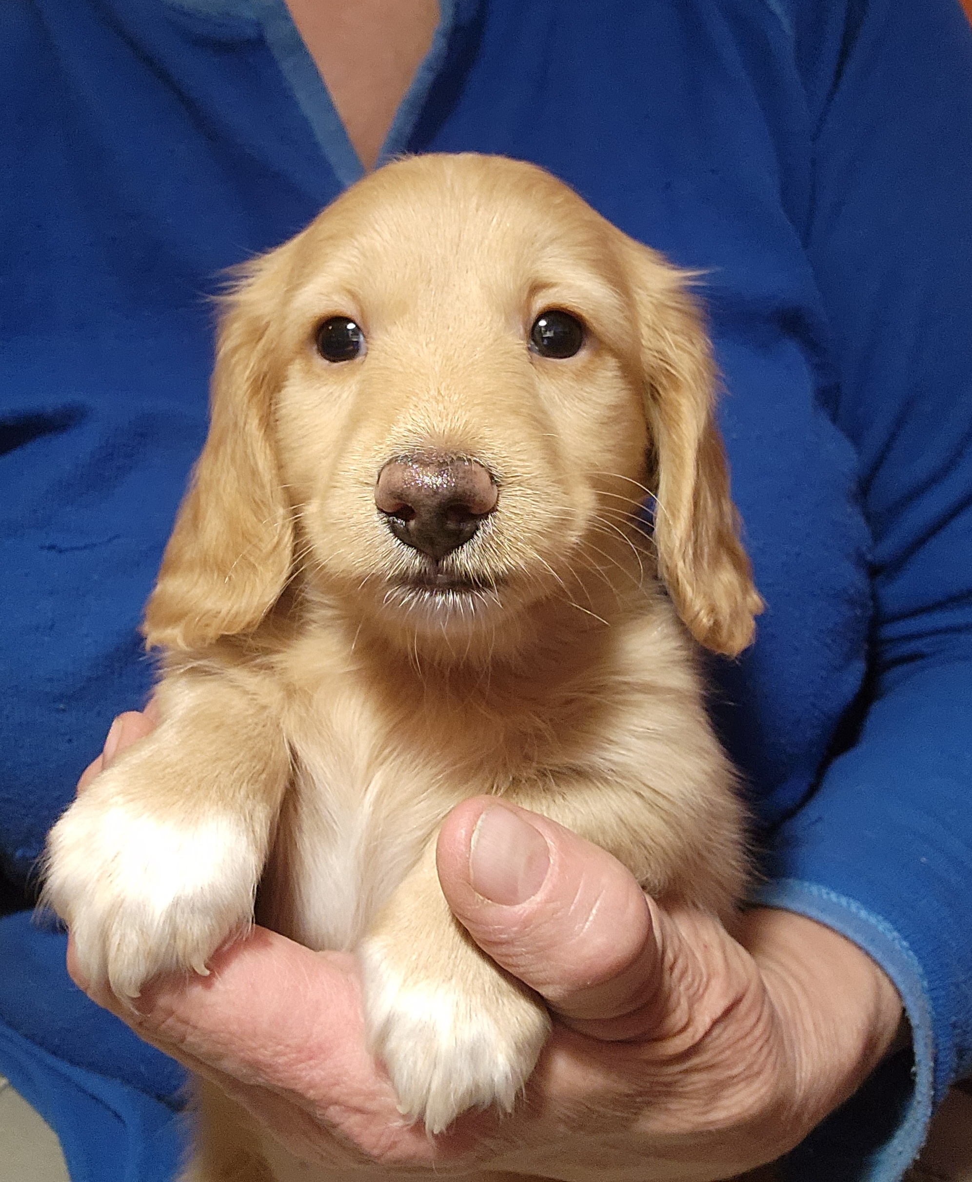 Ariella is a female Dachshund. Carefully selected as a great representative of her breed, Melissa decided to make her part of their program. Melissa has passed Good Dog’s screening process, which involved a review of their breeding practices, environment, and the mental and physical health of their dogs.
