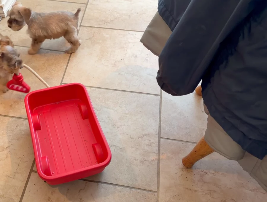 A few photos f the puppies exploring on their first day out of the playpen. So much curiosity!