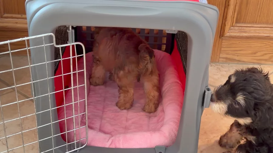 Crate training has started.