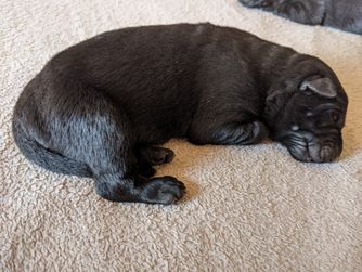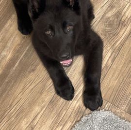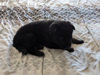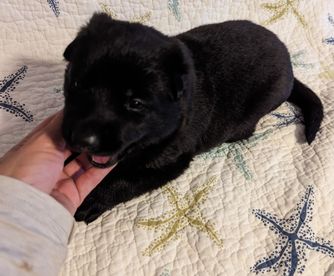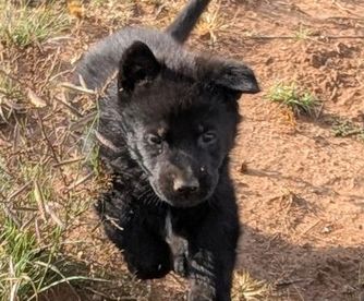 We saw our puppy, Shadow, on Nicole's website and we just had to have him. Purchasing him went smoothly, and we drove down from Colorado to pick him up. He's a strong and very intelligent puppy. He would tell me when he was hungry, thirsty, or needed to potty. He never got car sick on the ride back to Colorado. He is a beautiful dog and he is settling in at my home very well. I am already in love with him.