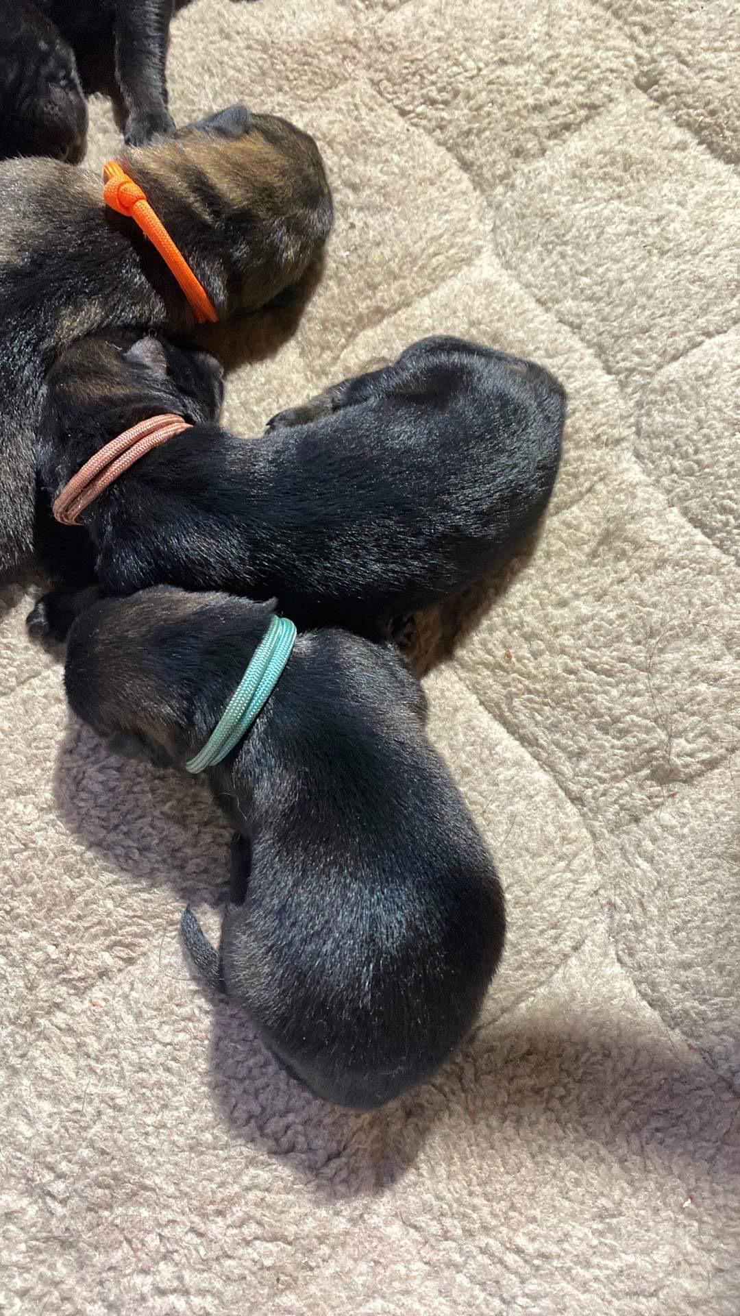 “Our puppies come with AKC Registration, age-appropriate vaccinations, multiple dewormings, 26 month health guarantee, puppy pack, crate & potty training started, raised with ENS, ESI, and Puppy Culture, & Avidog, raised on an 80 acre ranch, and breeder support.”