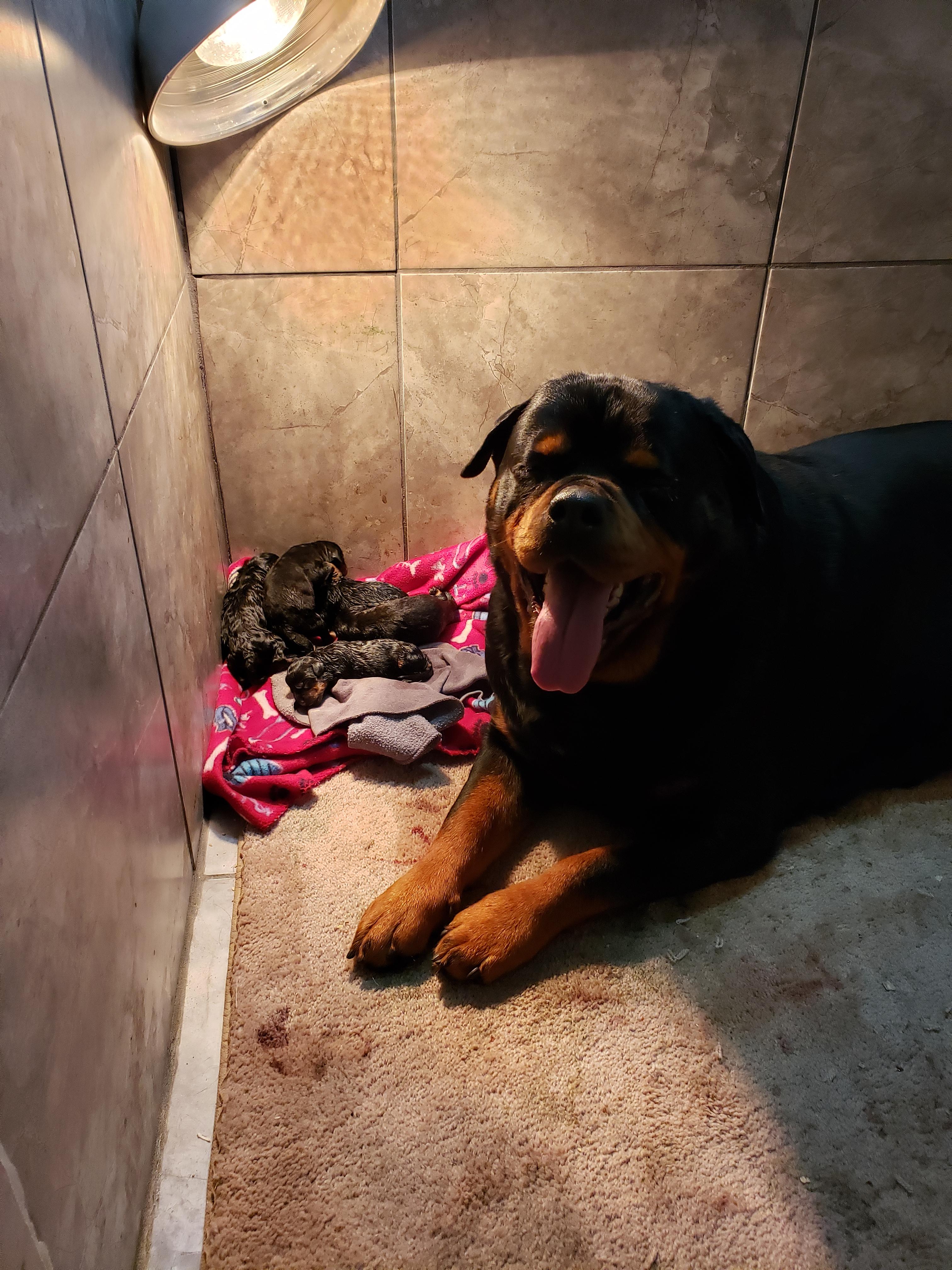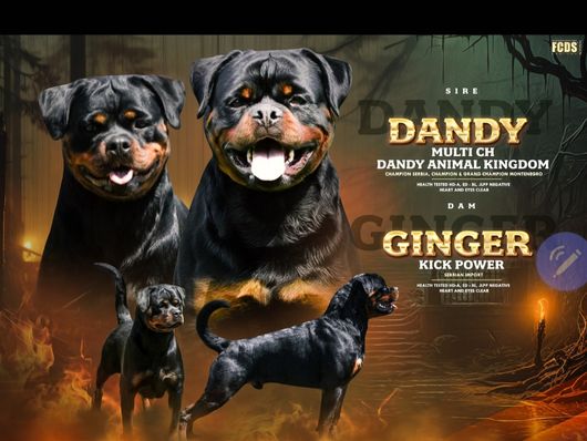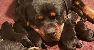 Ginger and Dandy's litter is a male Rottweiler. Carefully selected as a great representative of his breed, Jessica decided to make him part of their program. Jessica has passed Good Dog’s screening process, which involved a review of their breeding practices, environment, and the mental and physical health of their dogs.