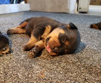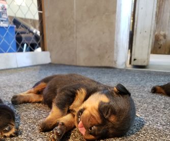 Our puppies include black and tan and black and mahogany. Colors will vary depending on the parent dogs.
