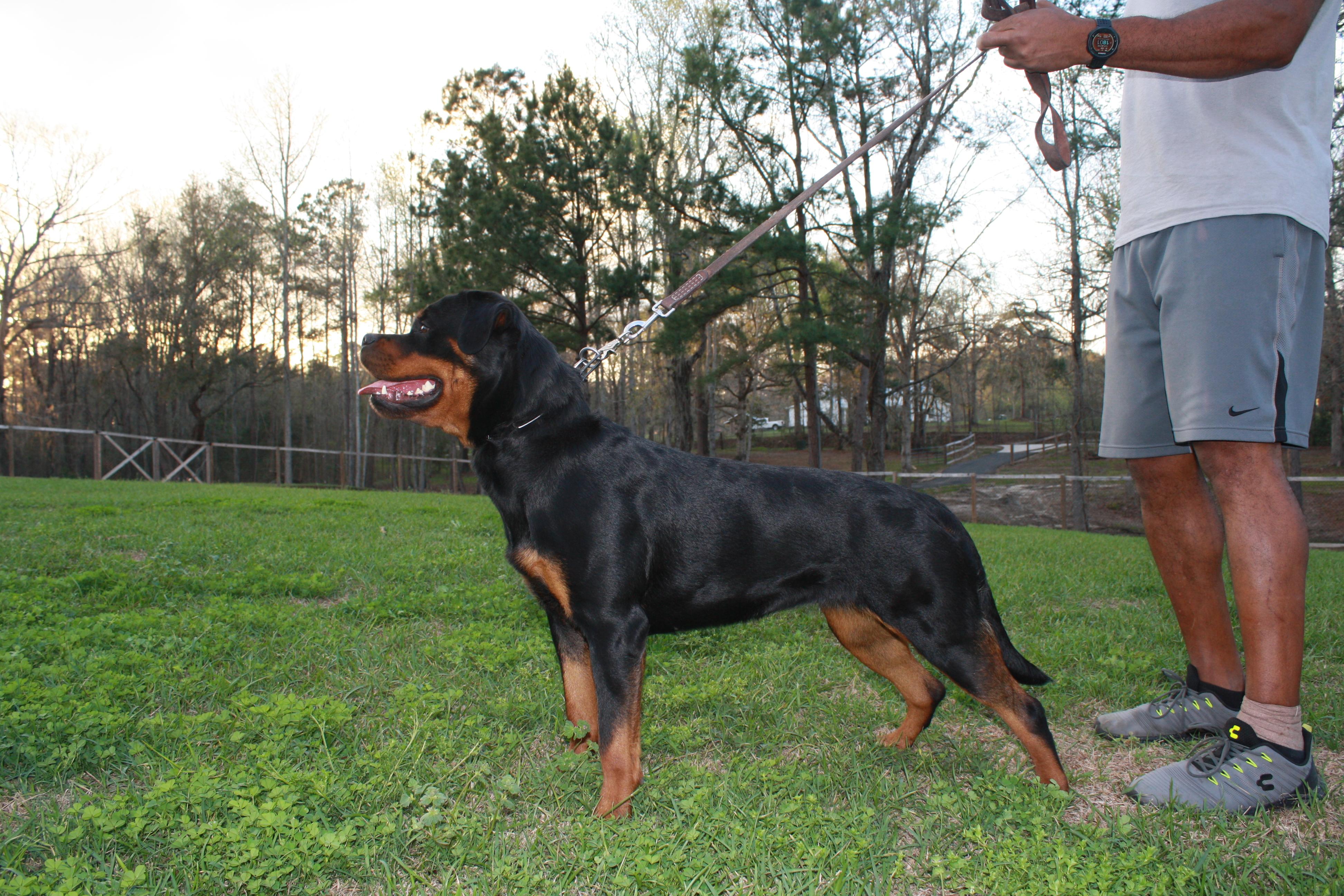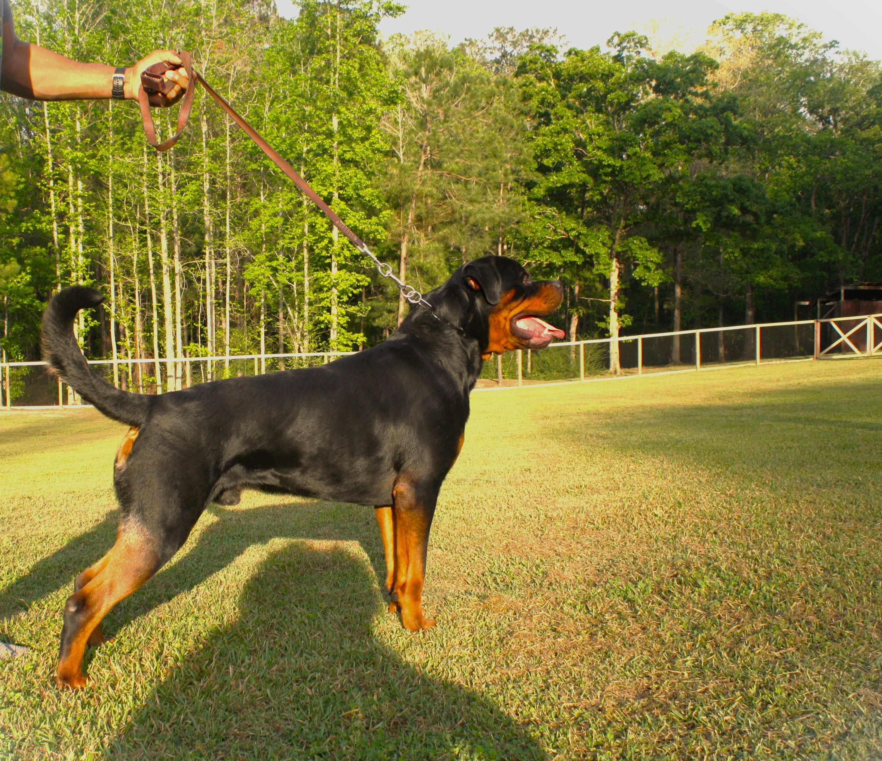 Von Der Quinn Rottweilers is a small breeding program, so all our dogs receive one on one socialization. We plan three litters per year. Our adult dogs are not daily housed in kennels and are housebroken as puppies. We encourage all our dogs to exercise throughout our 10 acre area which promotes confidence and an overall healthier Rottweiler.