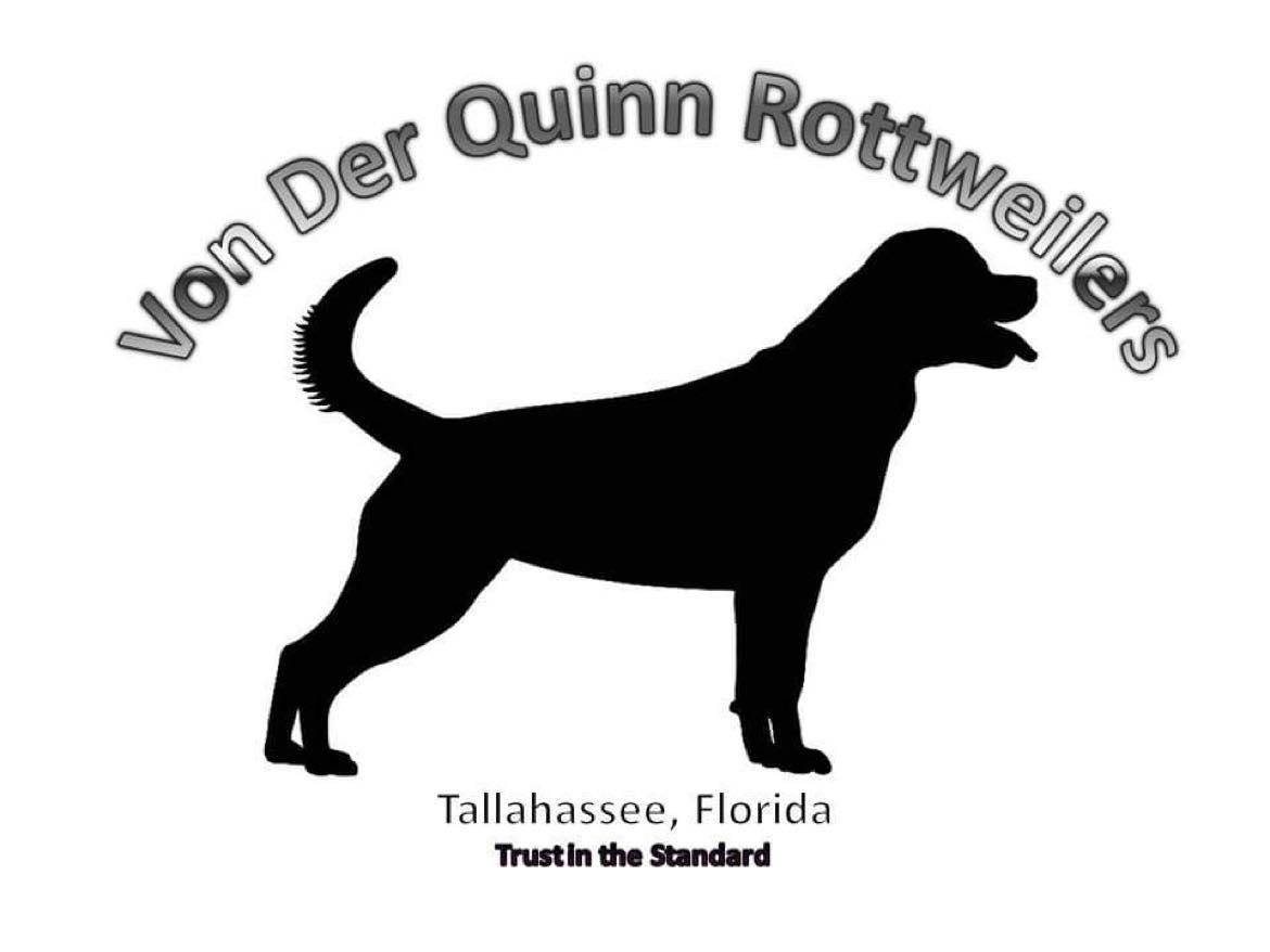 I'm Quinn B., the breeder behind Von Der Quinn Rottweilers located in Tallahassee, FL. We love to responsibly raise and train Rottweilers so they have the tools to be well-rounded, beloved family members. Our dogs are central to our lives, and we are proud of their accomplishments. We enjoy participating in German Sieger shows along with USCA obedience trials; staying involved in the breed.