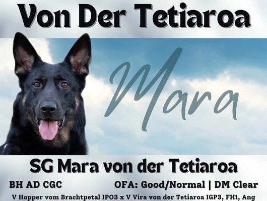 Von der Tetiaroa German Shepherd dogs meets or exceeds our community standards in these areas:
