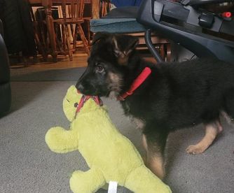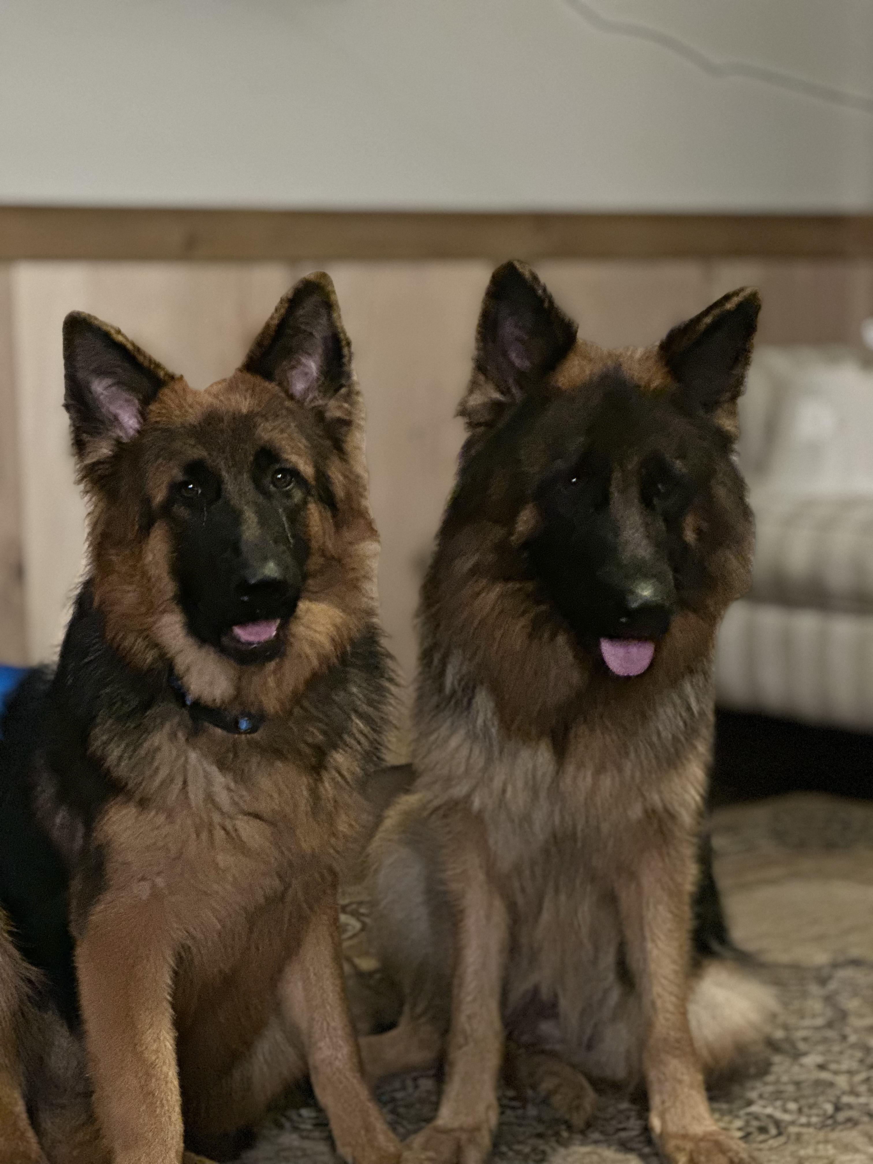 We were blessed to have found Ruby 2 years ago. She was just the perfect little girl. She has such a loving but yet independent disposition. Ty we have had since 16 weeks and is a character all of his own. He is a typical funny and silly GSD who truly thinks he is a 5 pound lap dog. The mix of these 2 quality parents have produced an amazing and varied litter.
