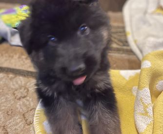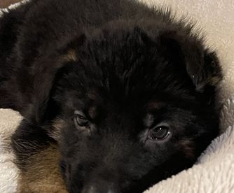 Solid black; showline Father, AKC Champ; mother red sable Czech