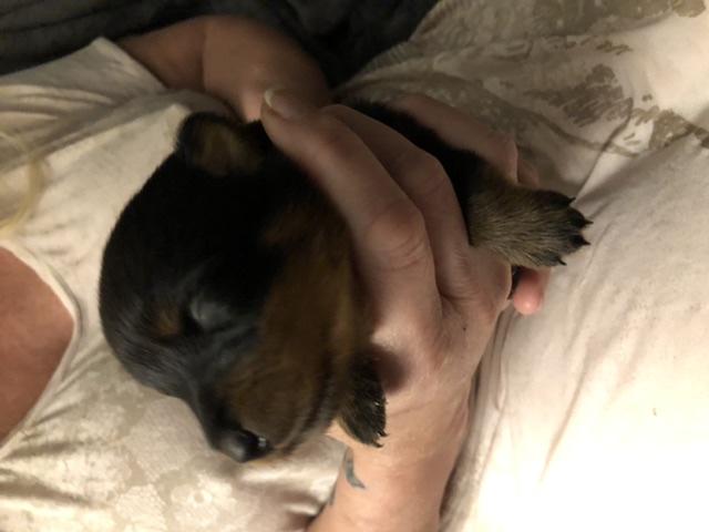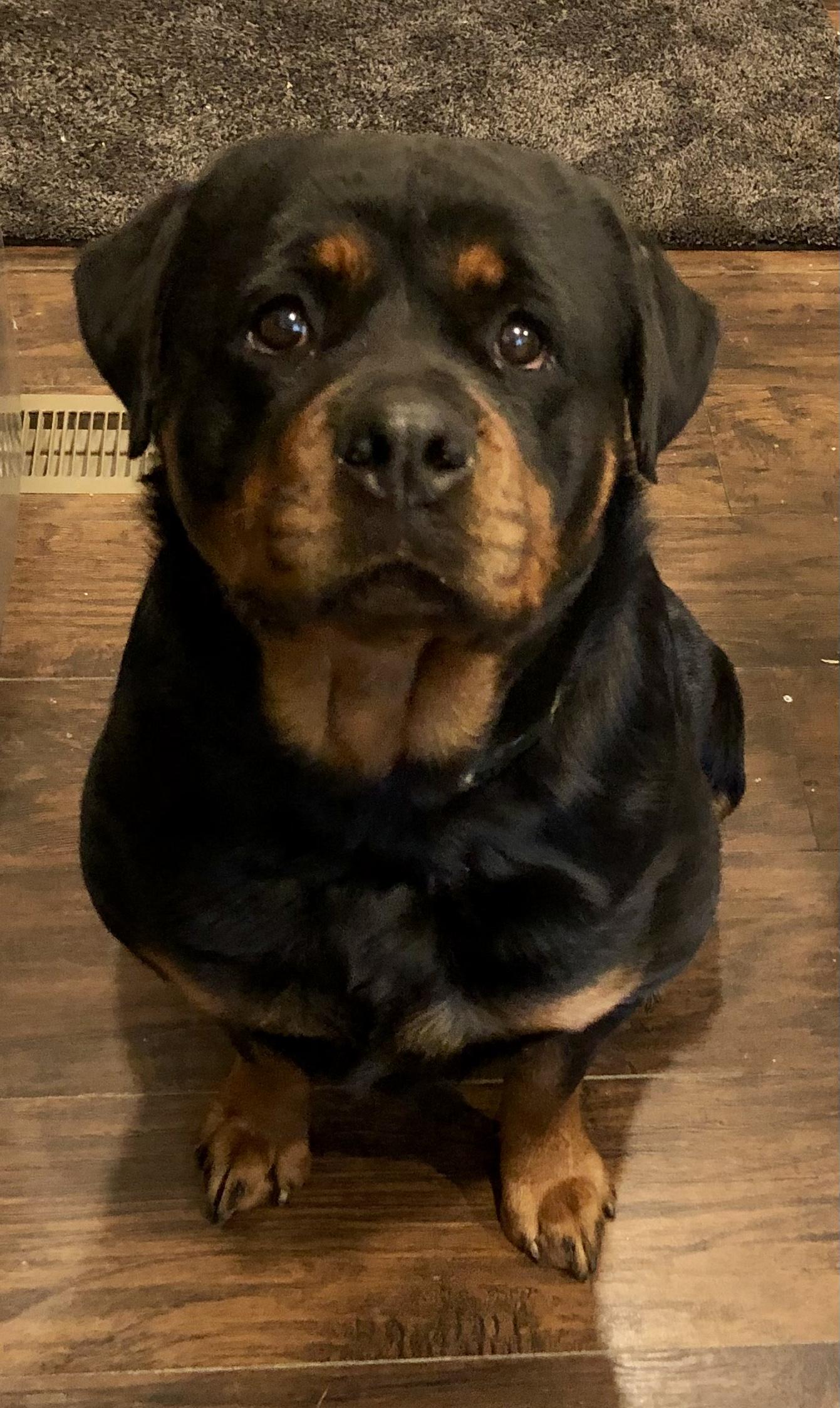 Hey Kimmie, I am so grateful for the beautiful female puppy- pink girl - Raven, she is such an excellent temperament, very enthusiastic, curious about her new home. What an excellent companion, she is is very similar to my first 3 Rottweiler puppies. Very smart, and attentive, follows me everywhere inside and outside! She has a great sense of humor! And like all Rottweiler puppies, enjoys showing off for their owners.