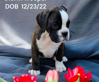 Our puppies include fawn and brindle. Colors will vary depending on the parent dogs.