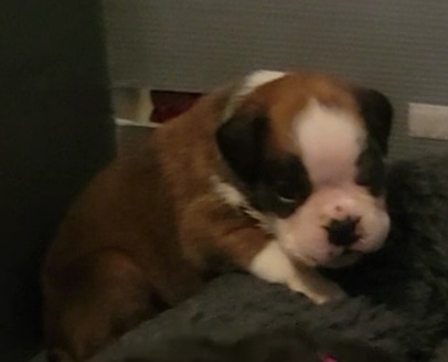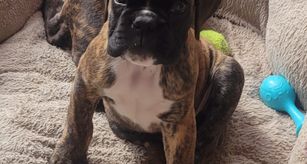 Whisper is a female Boxer. Carefully selected as a great representative of her breed, Fawnda decided to make her part of their program. Fawnda has passed Good Dog’s screening process, which involved a review of their breeding practices, environment, and the mental and physical health of their dogs.