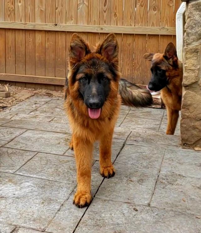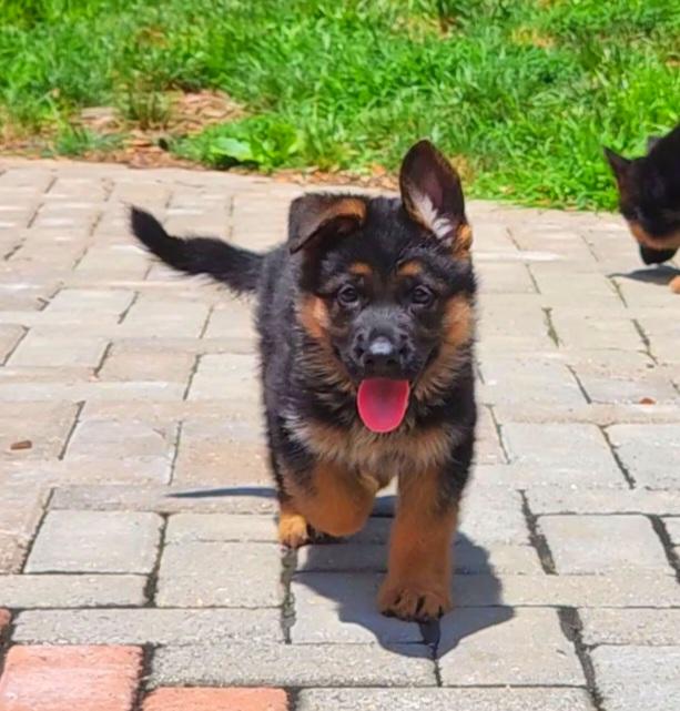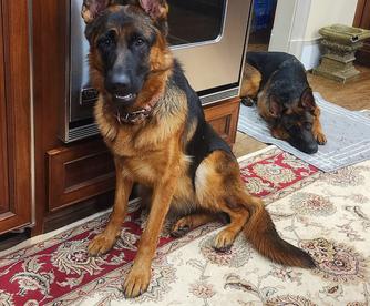 Not only our males, but also our females are continually shown all over Germany and Europe and have the highest IGP3, the highest legal certified working title which is very rare to find elsewhere. This ensures the highest level of intelligence and trainability. Most of our dogs are also certified medical service dogs. Dogs live in house, on home cooked organic diet. Socialized with tiny Yorkies.