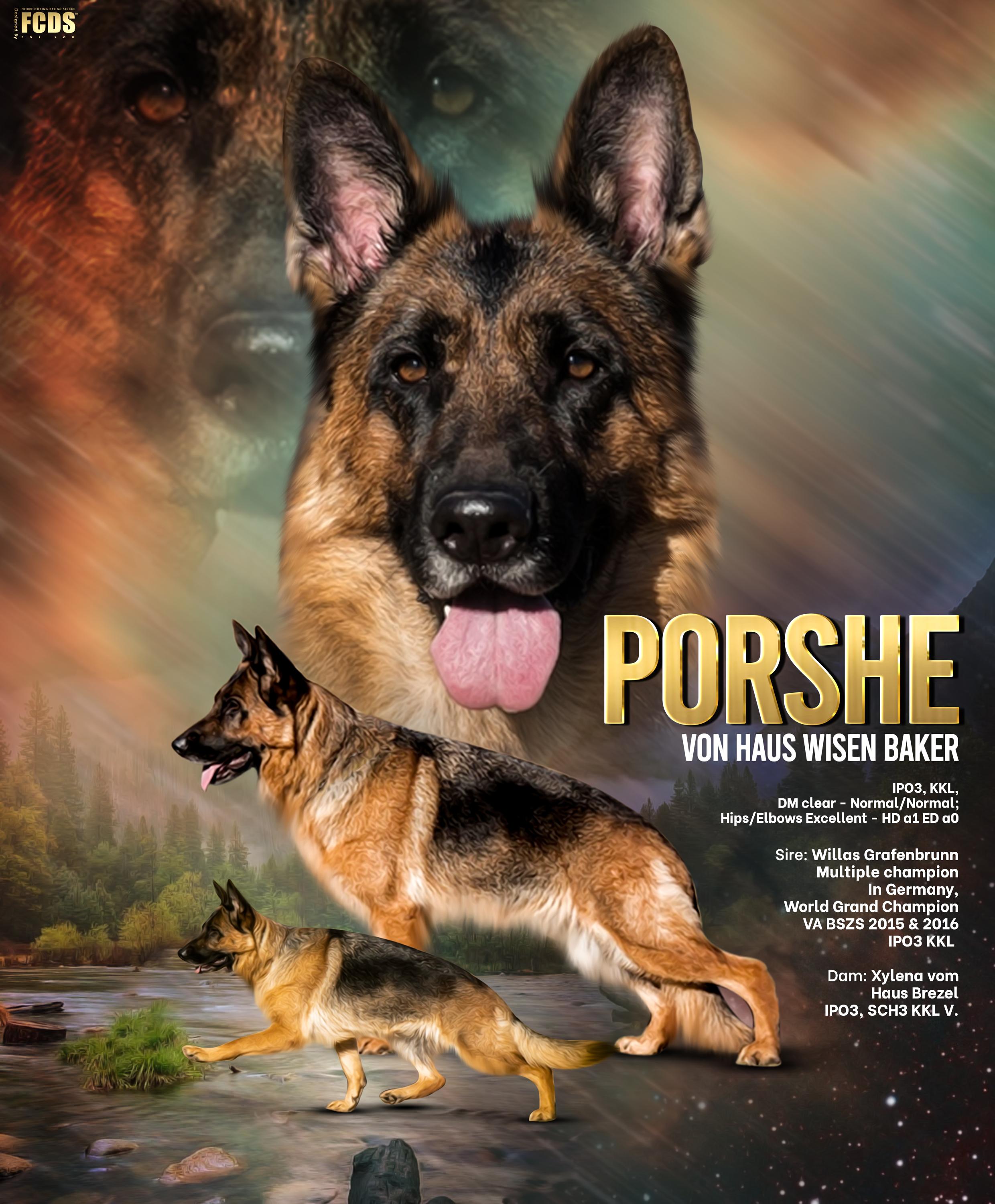 Highest level working title IGP3, breed survey KKL, SV V excellent Show rating in Germany, hips/elbows excellent, DM OFA clear