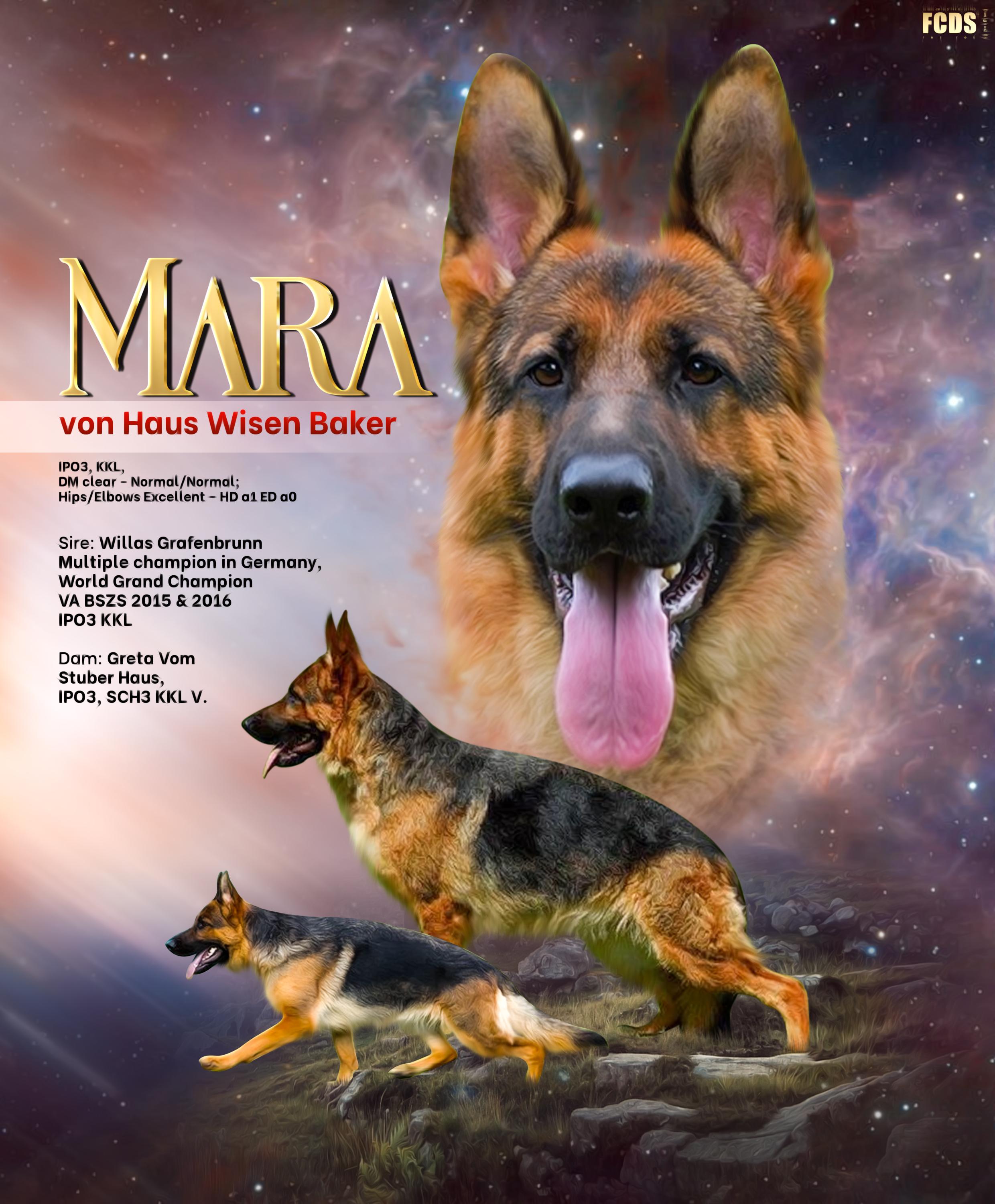 Mara is a female German Shepherd. Carefully selected as a great representative of her breed, Alena decided to make her part of their program. Alena has passed Good Dog’s screening process, which involved a review of their breeding practices, environment, and the mental and physical health of their dogs.