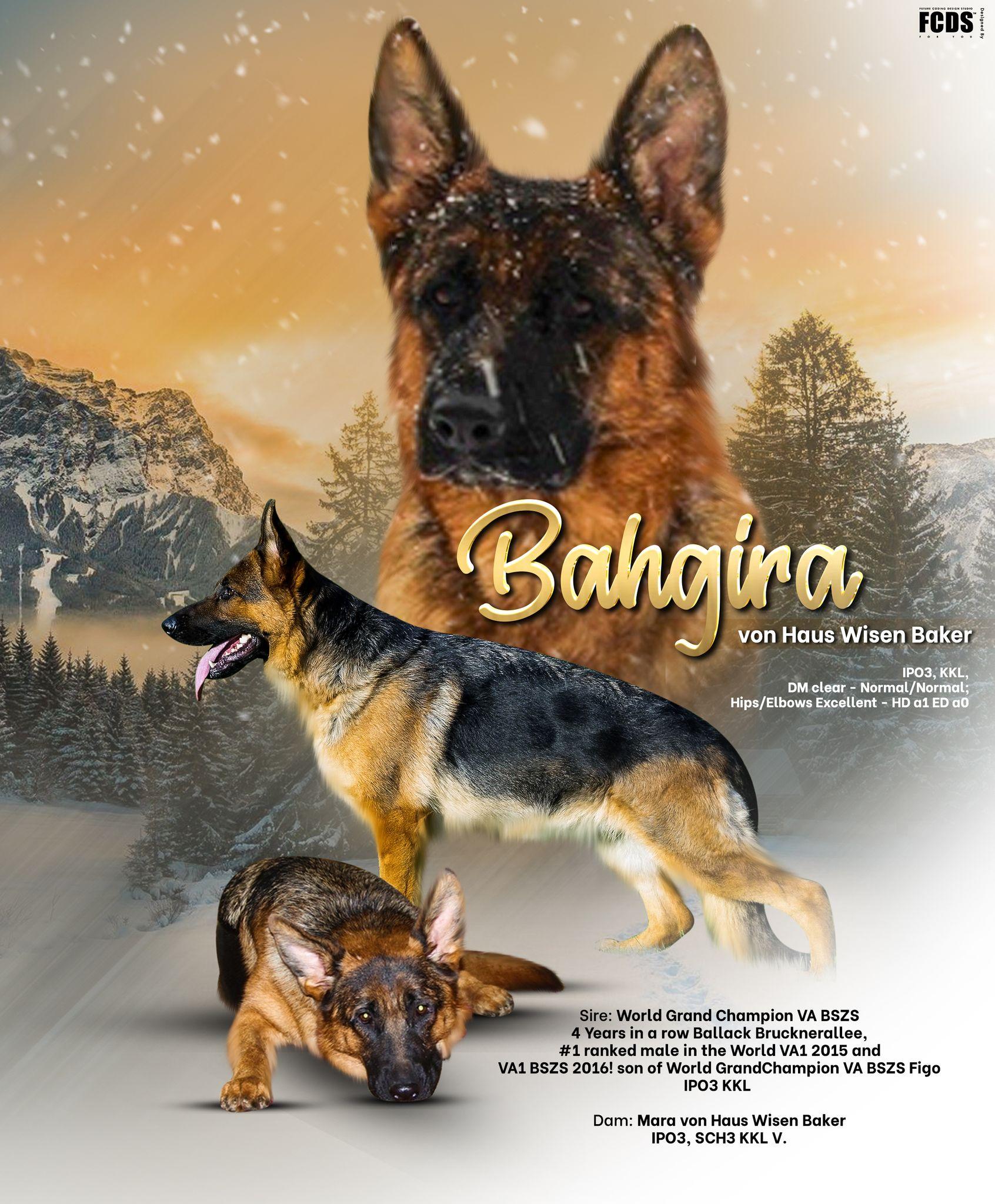 Bahgira is a female German Shepherd. Carefully selected as a great representative of her breed, Alena decided to make her part of their program. Alena has passed Good Dog’s screening process, which involved a review of their breeding practices, environment, and the mental and physical health of their dogs.