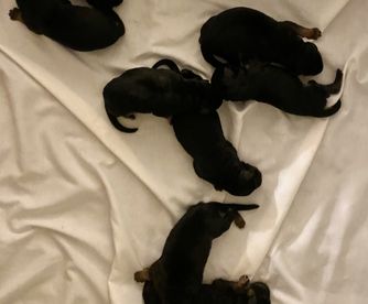 Our puppies are black and red. Colors will vary depending on the parent dogs.