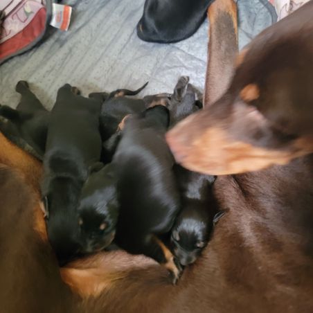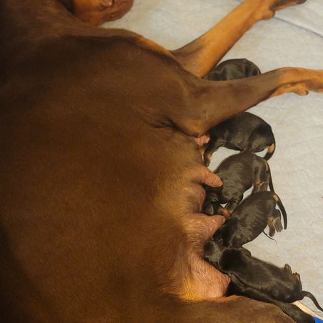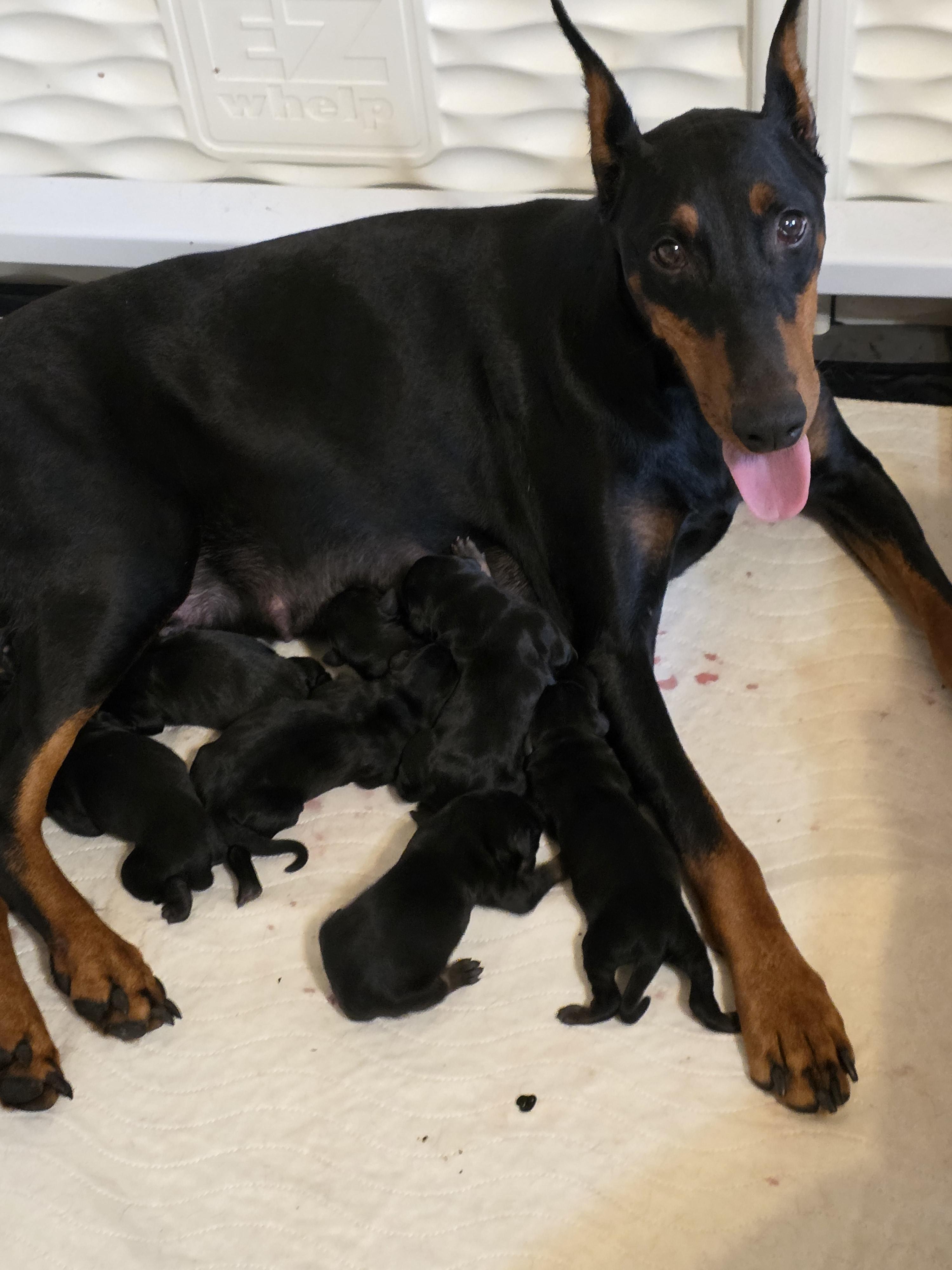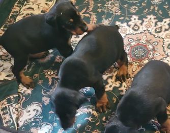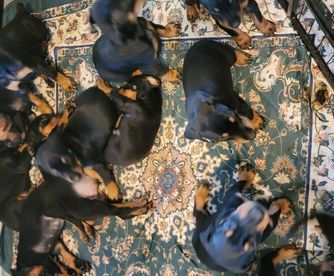 “Cropped (Doberman and Beauceron), docked(Doberman), age appropriate shots, dewormed, raised in home, starting puppy pad/paper training, puppy culture method. VKkennel dot com. All deposits can be rolled over to next litter if anything happens and you can not get your puppy.”