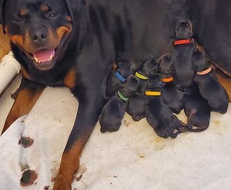 I'm Sue W., the breeder behind Von Knopf Rottweilers located in Carnesville,, GA. I breed quality, champion sired dogs to the breed standard. Parents have conformation or working titles & all health clearances. I strive to make sure each owner has the ability to get the very best out of their puppy. Many of my dogs have therapy dog certifications so temperament is very important.