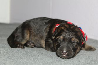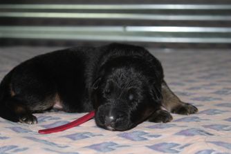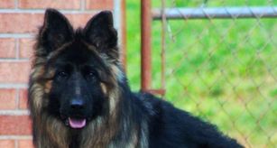 Kevin was bred by us. He is now a 2 year old impressive male. Stocky, large head. Dark black sable coat with mahogany features. Tempermant is a medium to medium high drive dog. Good food motivation, good in public, good with other dogs.