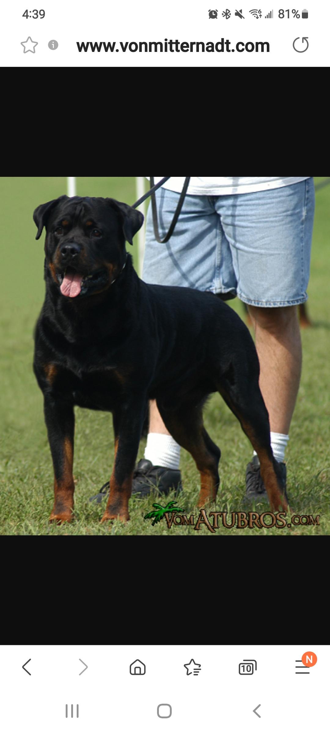 I'm Joanna L., the breeder behind Von Mitternacht Rottweilers located in Brimfield, IL. We care deeply about the Rottweiler and breed to help ensure the health and future of these wonderful dogs. We are dedicated to continuing our phenomenal lines in an effort to provide our Rottweiler families with loving, healthy, and happy puppies. Our puppies leave for their new homes with a solid foundation of training and socialization, and we strive for quality and excellence with everything that we do.