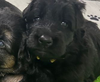 Our puppies are black and red. Colors will vary depending on the parent dogs.