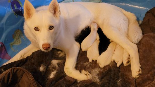 Mya is a female Siberian Husky. Carefully selected as a great representative of her breed, Michelle decided to make her part of their program. Michelle has passed Good Dog’s screening process, which involved a review of their breeding practices, environment, and the mental and physical health of their dogs.