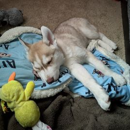 Cassidy is a female Siberian Husky. Carefully selected as a great representative of her breed, Michelle decided to make her part of their program. Michelle has passed Good Dog’s screening process, which involved a review of their breeding practices, environment, and the mental and physical health of their dogs.