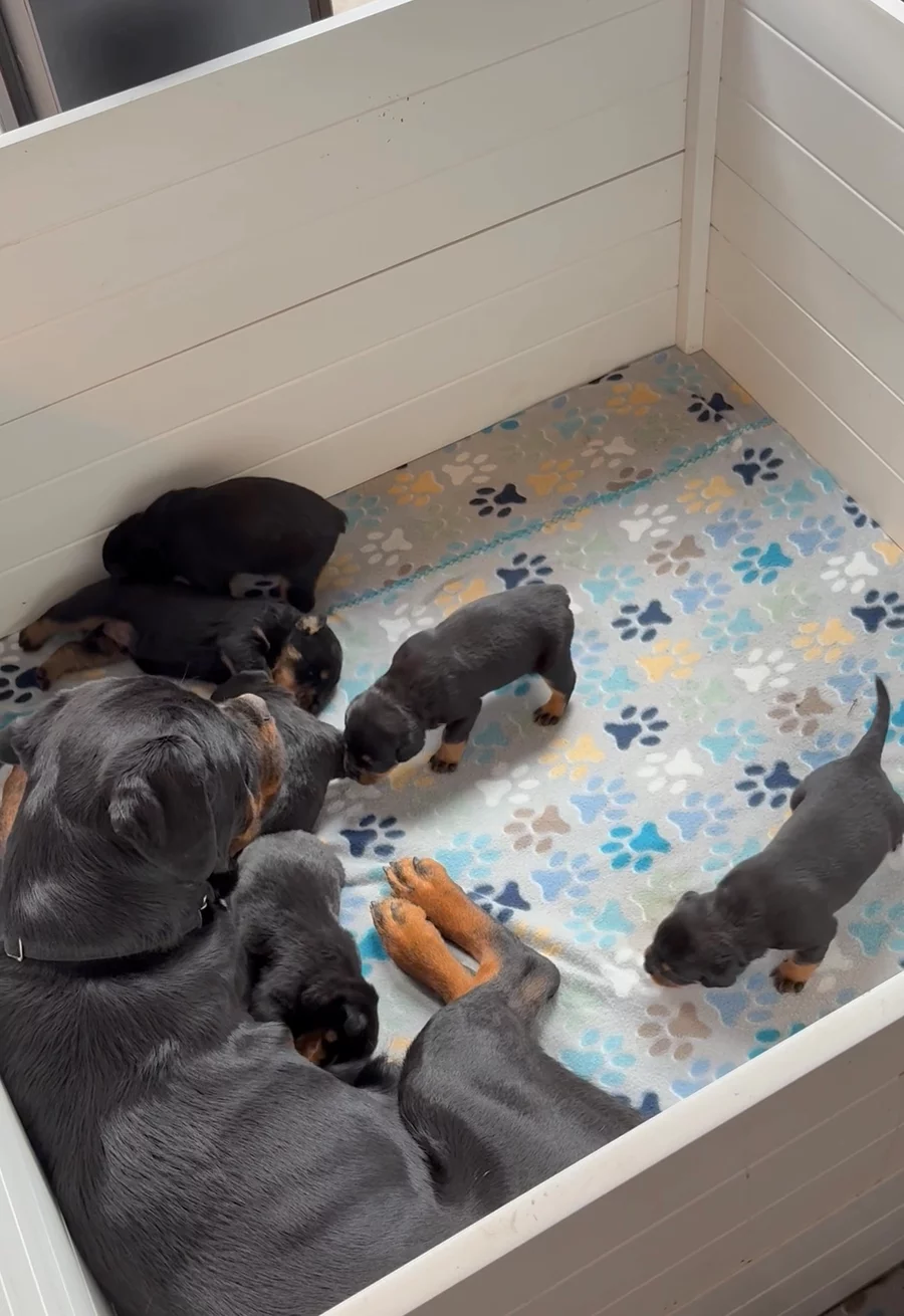 “Our exquisite Rottweiler puppies begin at $2500- reflecting their exceptional quality, temperament, elite European bloodlines & lifelong companionship. We require a NON-Refundable deposit of $200 to secure your pick spot and is applied to the total purchase price, ensuring your place in our ever-growing Rottweiler family!”