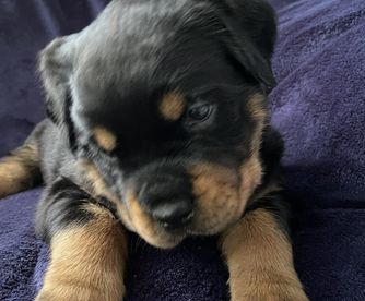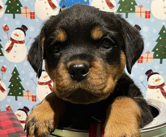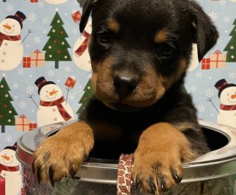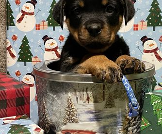 I'm Greta R., the breeder behind Von Schonen Rottweilers located in Shelbyville, KY. Our team strives to produce genetically sound and healthy Rottweilers. We breed canines with trainable temperaments who can be used for what they were meant for, the ultimate working-class breed. We do proper testing and socialization protocols on all of our breeding dogs and pups.